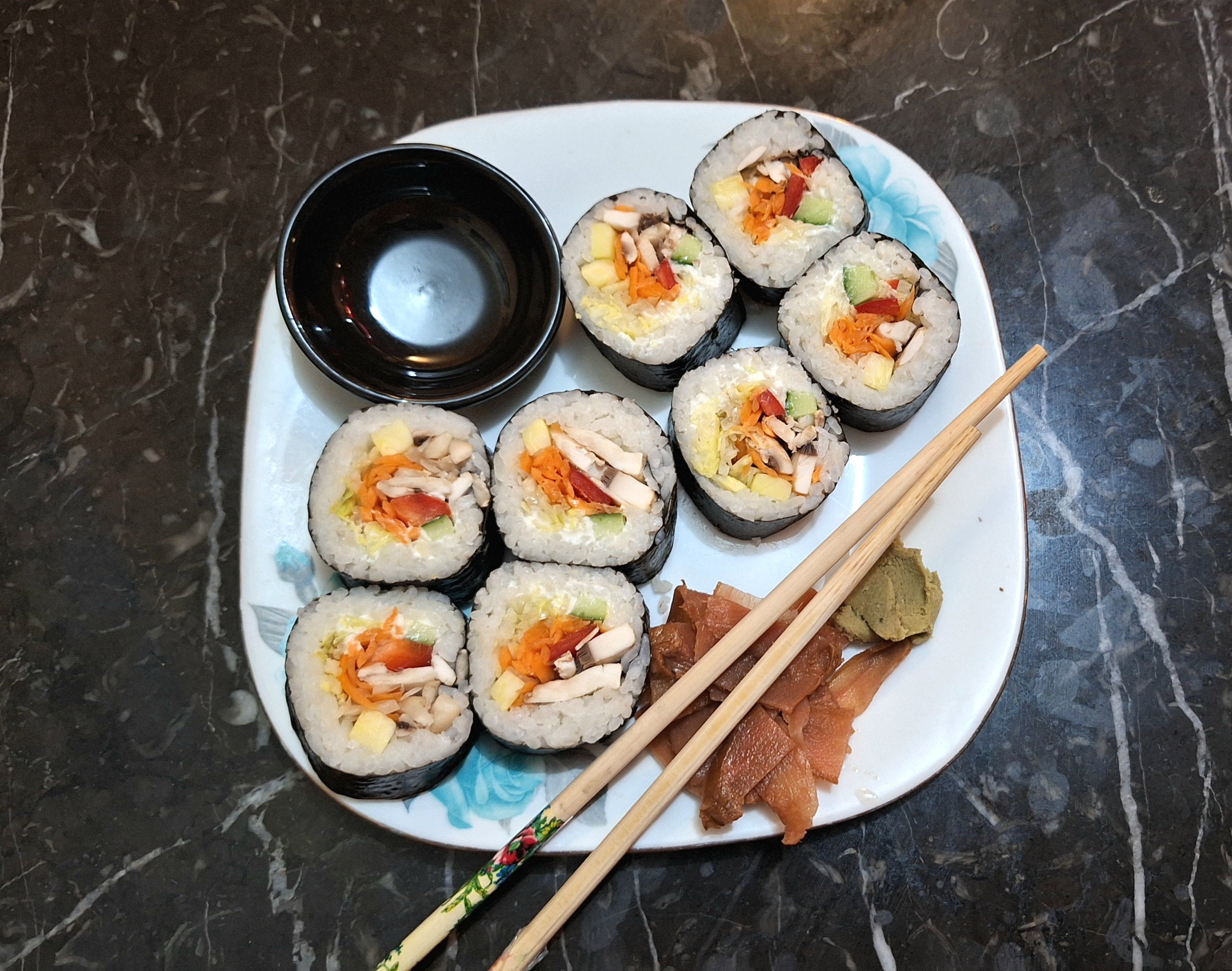 نمیتونم درست طعمشو(طعم گندشو) توصیف کنم. اونا که زیر چاپستیک قایم شدن یکیشون سس واسابیه(بهش میگن ترب ژاپنی، من میگم صابون مراغه با چاشنی فلفل) اون یکی هم نمیدونم اسمش چیه. انگار کلم بود که سی چهل ساعت توی فلفل و زنجبیل خوابونده بودنش و این طوری بود که کاش آفت میزد به بن و ریشم ولی به اینجا نمیرسیدم..