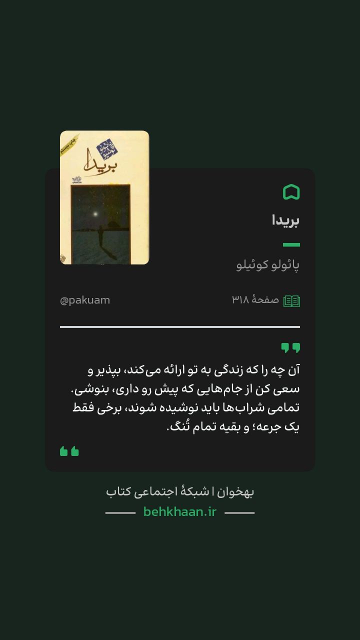 بریدا میخونم و روحم ذوق میکنه. عصری کتابشو رو شیکمم گذاشته بودم و رسما بغل گرفته بودمش. کتاب بغل کردن رو باید بیشتر امتحان کنم.